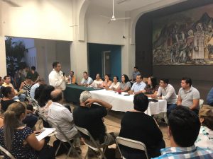 Seguridad, luminarias, baches, recolección de ramas y cacharros, podas y otras demandas, fueron planteados por ciudadanos villalvarenses de diversas colonias, durante una reunión con el alcalde Felipe Cruz Calvario, en el Salón Verde del edificio de la Presidencia Municipal de Villa de Álvarez.