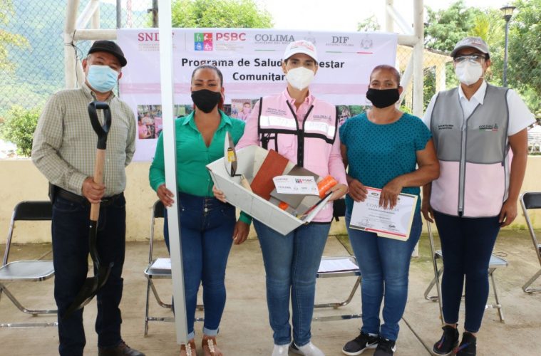 La Presidenta del Patronato DIF y Voluntariado Estatal, Margarita Moreno González, encabezó la entrega de apoyos a las Comunidades El Sauz y La Loma, del municipio de Minatitlán, a través del Programa Salud y Bienestar Comunitario, encaminados al desarrollo de la comunidad, el autoempleo, rescate y embellecimiento de espacios públicos, la salud y el bienestar y, el desarrollo sostenible.