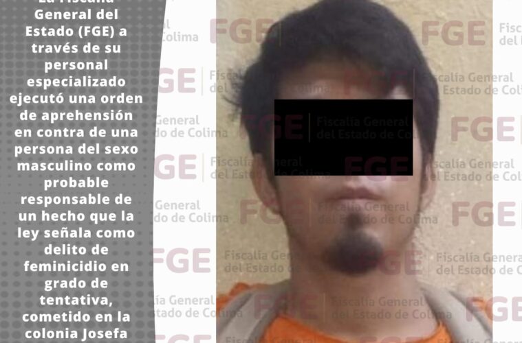 La Fiscalía General del Estado (FGE) a través de su personal especializado ejecutó una orden de aprehensión en contra de una persona del sexo masculino como probable responsable de un hecho que la ley señala como delito de feminicidio en grado de tentativa, cometido en la colonia Josefa Ortiz de Domínguez en la ciudad de Colima.