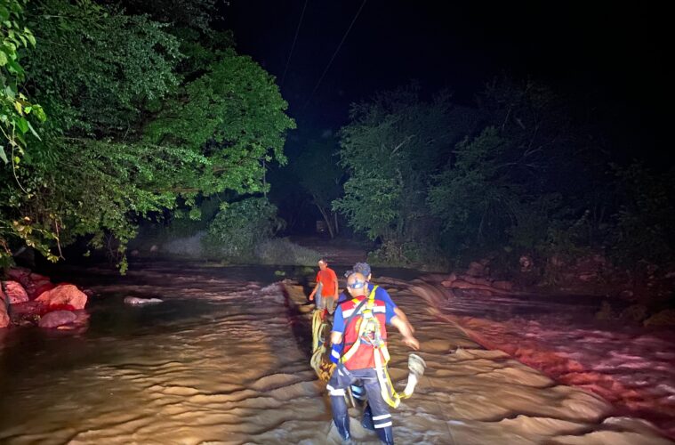 Villa de Álvarez, Col.- La Unidad Municipal de Protección Civil de Villa de Álvarez rescató a 28 personas que en la comunidad de El Mixcuate quedaron incomunicadas la noche de este primero de octubre, luego de que la lluvia del fin de semana y el lunes provocarán la crecida del río San Palmar.